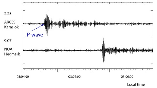 More data is becoming available on Monday’s nuclear test. NORSAR has published the waveform data from two of their stations. The primary wave is very noticeable and sharp, which indicates a man-made explosive event (earthquakes tend to brew a while before really making noise).